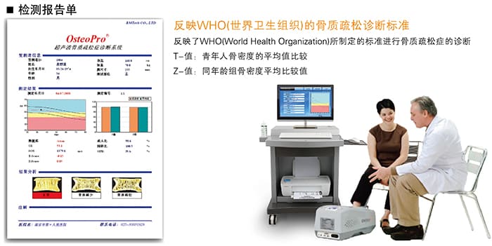 OsteoPro UBD2002A超聲骨密度儀是韓國BMTech公司2009年推向中國市場的一款內(nèi)置電腦的高性能骨密度儀產(chǎn)品,BMTech公司授權(quán)南京科進實業(yè)有限公司為中國區(qū)總代理。該產(chǎn)品突破了骨密度檢測依賴于X射線的測量方法,利用超聲技術(shù),通過測量人體跟骨的超聲參數(shù),獲取與雙能X射線骨密度儀高度相關(guān)的骨密度數(shù)據(jù),從而實現(xiàn)了骨密度的無創(chuàng)檢測。