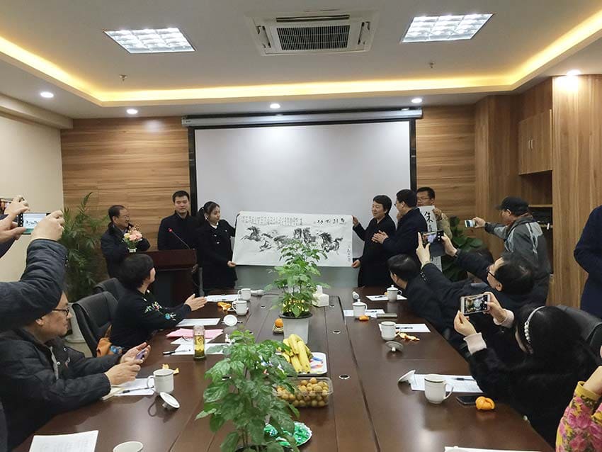 會議結(jié)束前,何會長代表南京市醫(yī)療器械行業(yè)管理協(xié)會向科進(jìn)-澳思泰贈送了《八駿圖》,祝愿科進(jìn)-澳思泰喬遷新址,馬到成功!