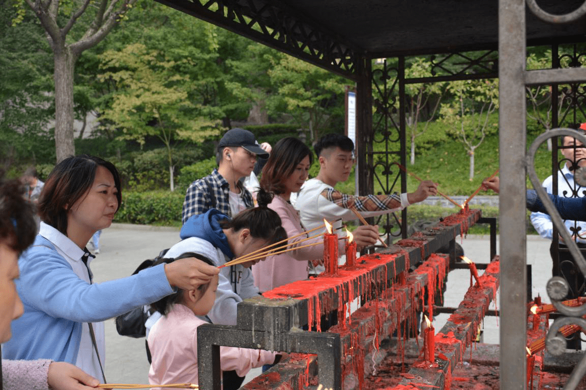 首先我們來(lái)到景區(qū)主入口的哼哈殿,殿內(nèi)兩側(cè)供奉的兩尊金剛神像,威武驃悍、露牙睜目,便是守門神“哼哈二將”。過(guò)了哼哈殿可見一個(gè)小巧的明鏡湖,有“彩虹明鏡”碑立于湖邊,漣猗驟起,波光浮動(dòng),真象是透明的玻璃鑲嵌在綠色的地毯上。明鏡湖向前數(shù)步,可見鐘鼓樓,寂然法師像就豎立在鐘樓后方。鐘鼓樓向前數(shù)步為白蓮池,呈半月形,故名月牙池,科進(jìn)-澳思泰的銷售大部隊(duì)也在這里停下腳步虔誠(chéng)的許下愿望。