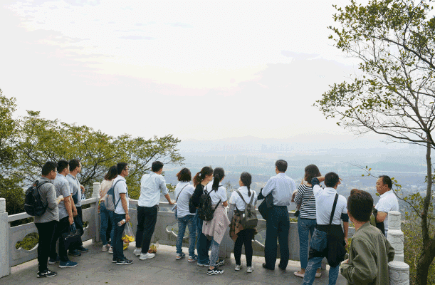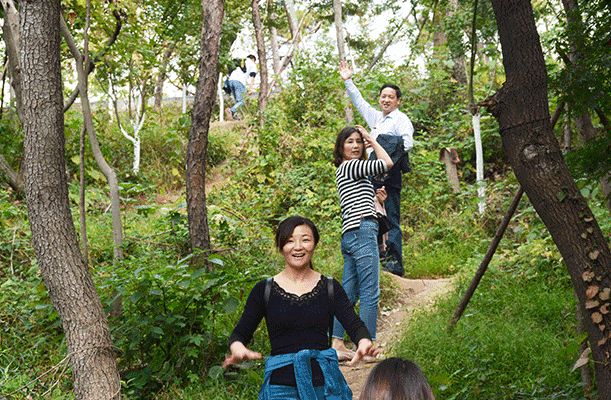 由于山路比較好走,大家途中有說(shuō)有笑,一會(huì)功夫便來(lái)到了半山腰。在景觀臺(tái)上,享受山間清風(fēng),面對(duì)這開闊的視野,有的員工忍不住大吼了兩聲,瞬間感覺平時(shí)的工作壓力緩解了許多。還有員工說(shuō):“來(lái)到這里,整個(gè)人的心情都不一樣了”。逗留了片刻,拍照留念后,大家繼續(xù)登山的腳步,途中已有不少人氣喘吁吁,汗流浹背。