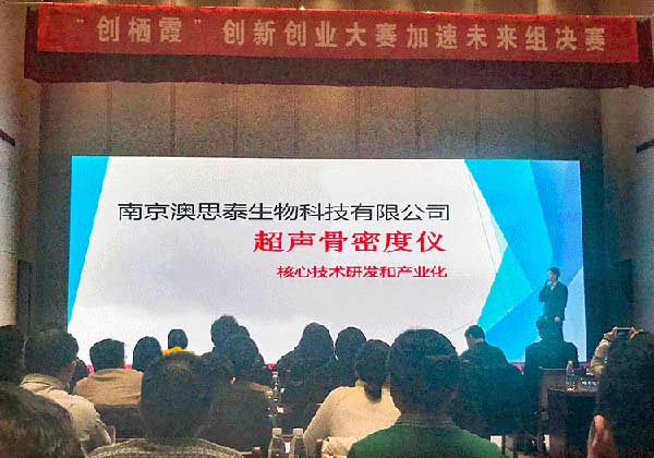2019年4月15日,首屆“創(chuàng)棲霞”創(chuàng)新創(chuàng)業(yè)大賽頒獎(jiǎng)典禮在南京紫東生態(tài)會(huì)議中心隆重舉行,澳思泰參賽項(xiàng)目“超聲骨密度儀核心技術(shù)研發(fā)”榮獲“加速未來(lái)組”三等獎(jiǎng)。