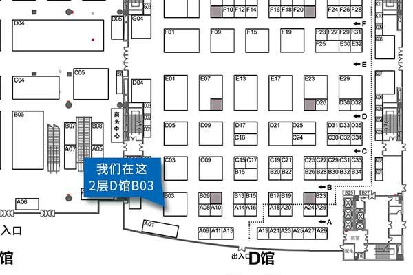 我們的展位是二層D館B03號(hào)
