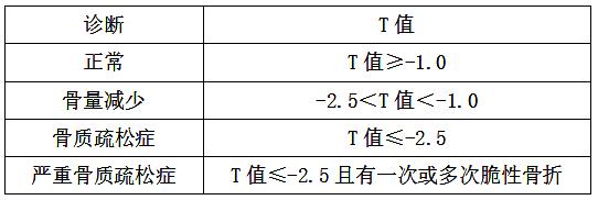 骨質(zhì)減少: T-值: –1 ~ -2.5 SD
