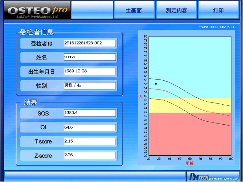 內(nèi)設(shè)全世界不同國家地區(qū)數(shù)據(jù)庫系統(tǒng)兼容,自帶各不相同的種族(國人,亞洲人,西方人,非洲黑人)數(shù)據(jù)庫,操作系統(tǒng)獲取相對的數(shù)據(jù)庫系統(tǒng),進而獲得準確的測量報告單。永久性油囊,特制超聲傳導(dǎo)用油,使用特別制作耐磨損低衰減系數(shù)油囊,永久性使用,免維護保養(yǎng)使用;出貨時灌入超聲傳導(dǎo)油,最大限度的降低外界溫度差造成的測量數(shù)據(jù)誤差,很大程度上改進復(fù)現(xiàn)性和準確度。